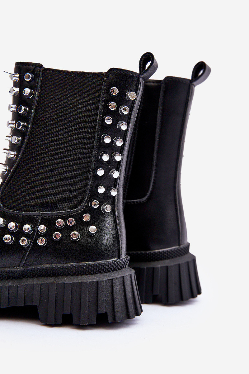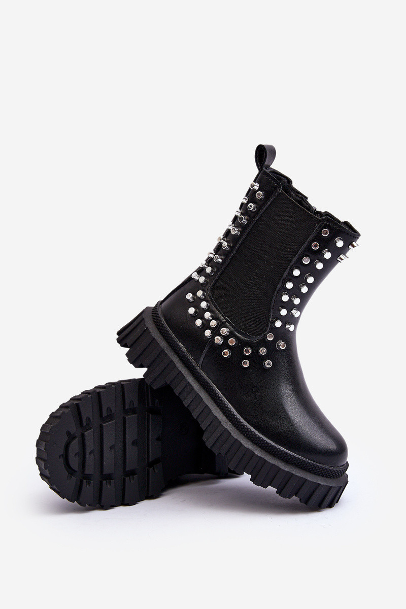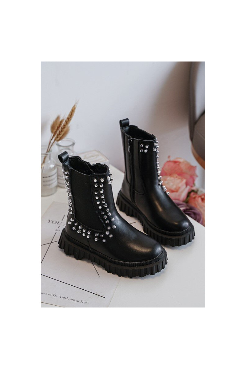 Stilingi juodos spalvos vaikiški aulinukai Adelie, dekoruoti kalnų krištolais