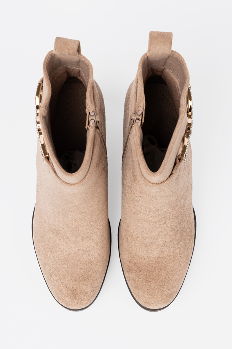 smėlio spalvos batai ant pleišto su dekoratyvine sagtimi
