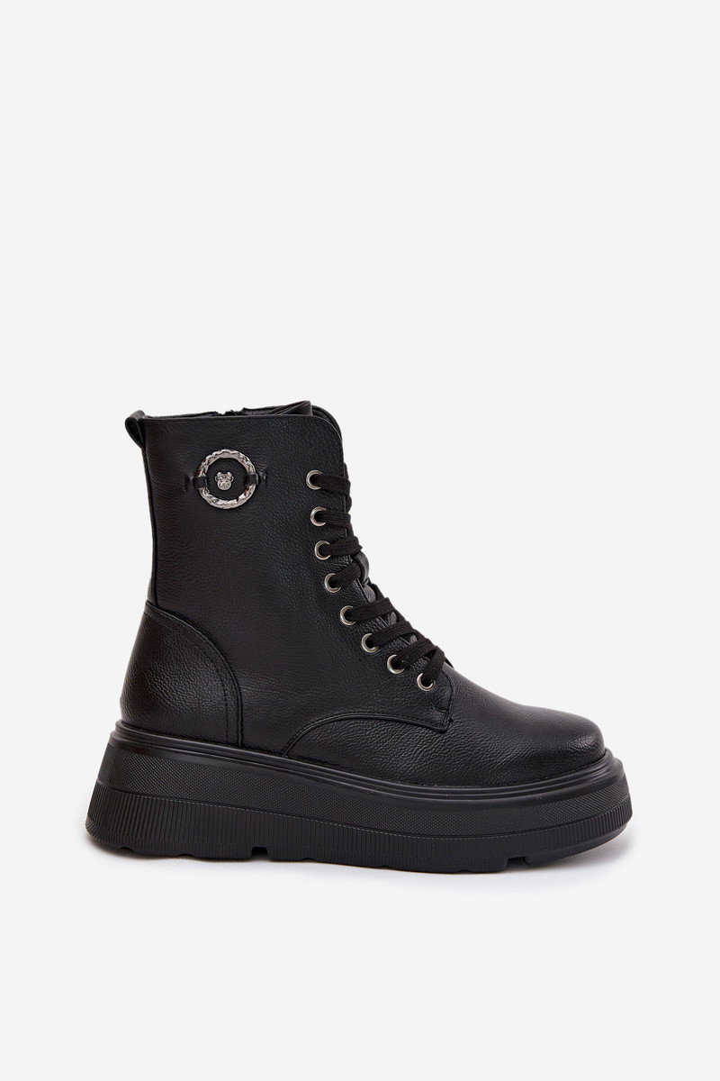 darbiniai moteriški kulkšnies batai pašiltinti su platforma su puošniomis detalėmis Vinceza 16513 juodos spalvos