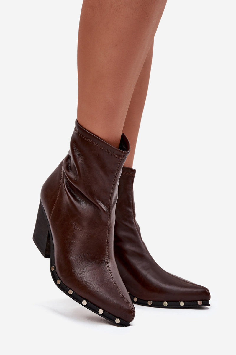 Rudos spalvos kaubojų stiliaus moteriški aulinukai iš ekologiškos odos su kulniukais Abrielle