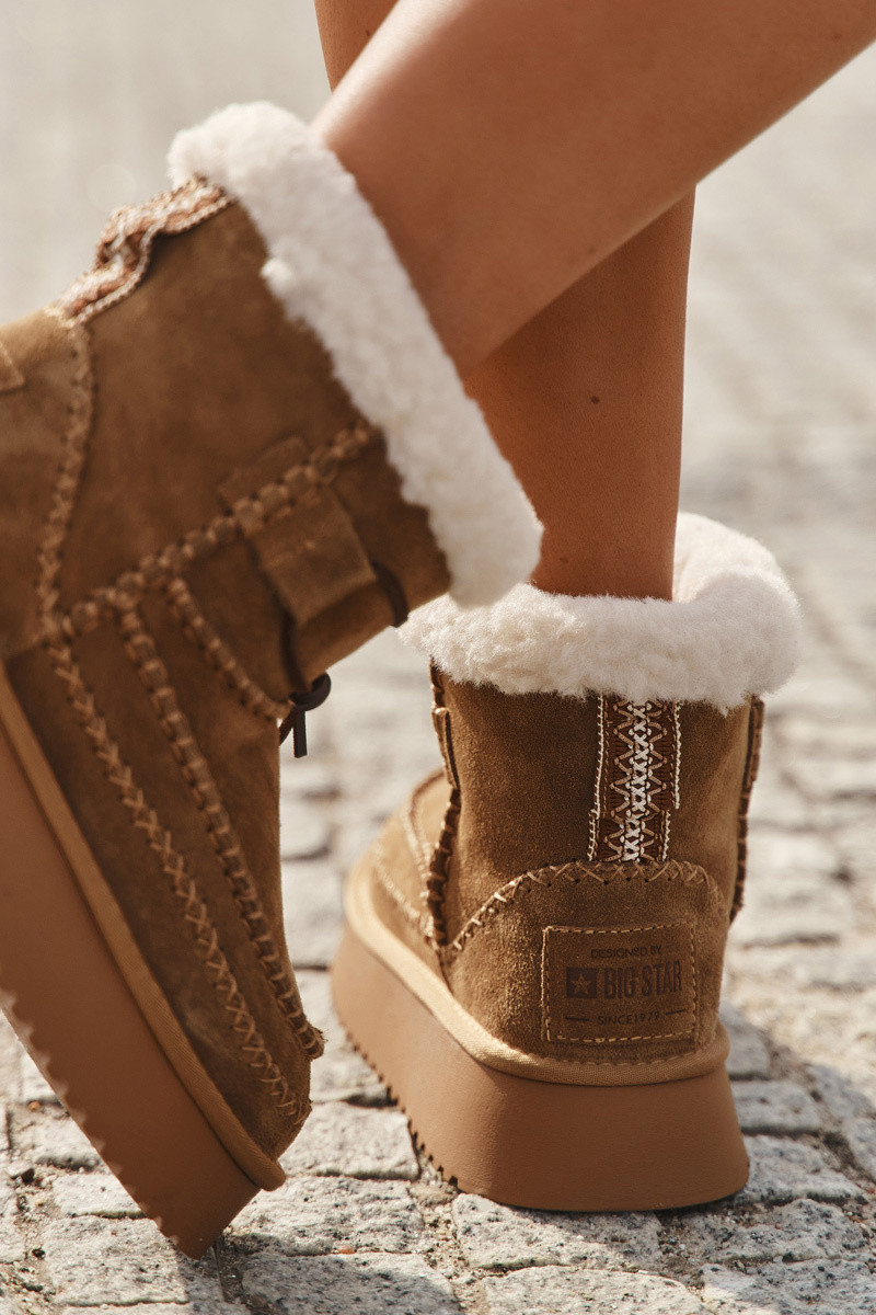Zomšiniai sniego batai moteriški su puošniais persiuvimais, Big Star SS274373, rudos spalvos