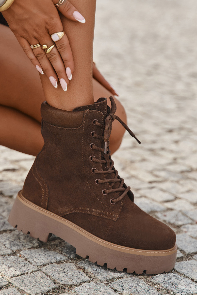 Zomšiniai moteriški auliniai batai su raišteliais Big Star SS274792 rudos spalvos