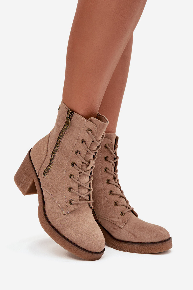 Pašiltinti moteriški smėlio spalvos aulinukai su raišteliu ir užtrauktukais Paressa