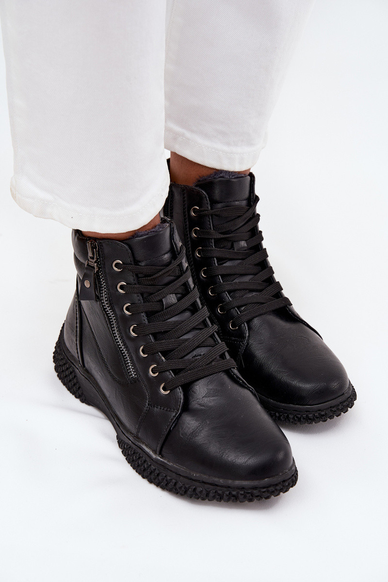 Juodos spalvos moteriški šilti aulinukai su kailiuku viduje iš eko odos Ulverina