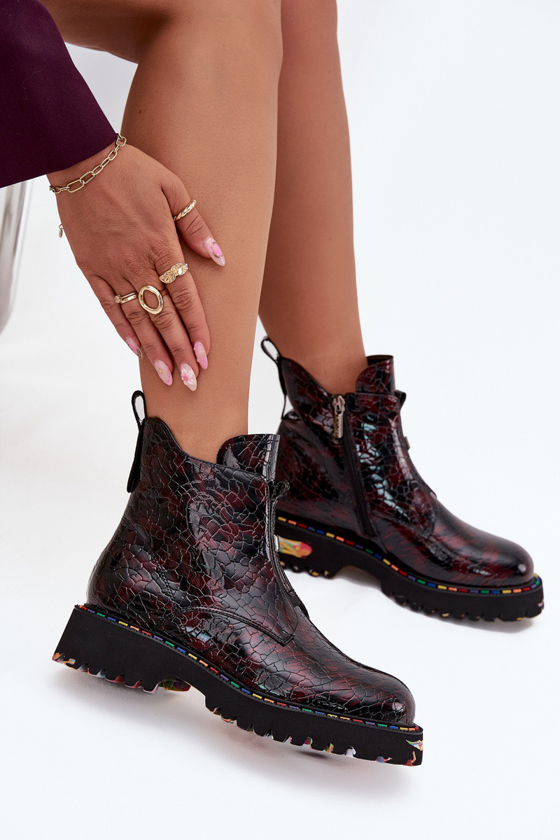 Pašiltinti moteriški aulinukai iš natūralios odos su lako efektu Artiker 57C0165 bordo spalvos