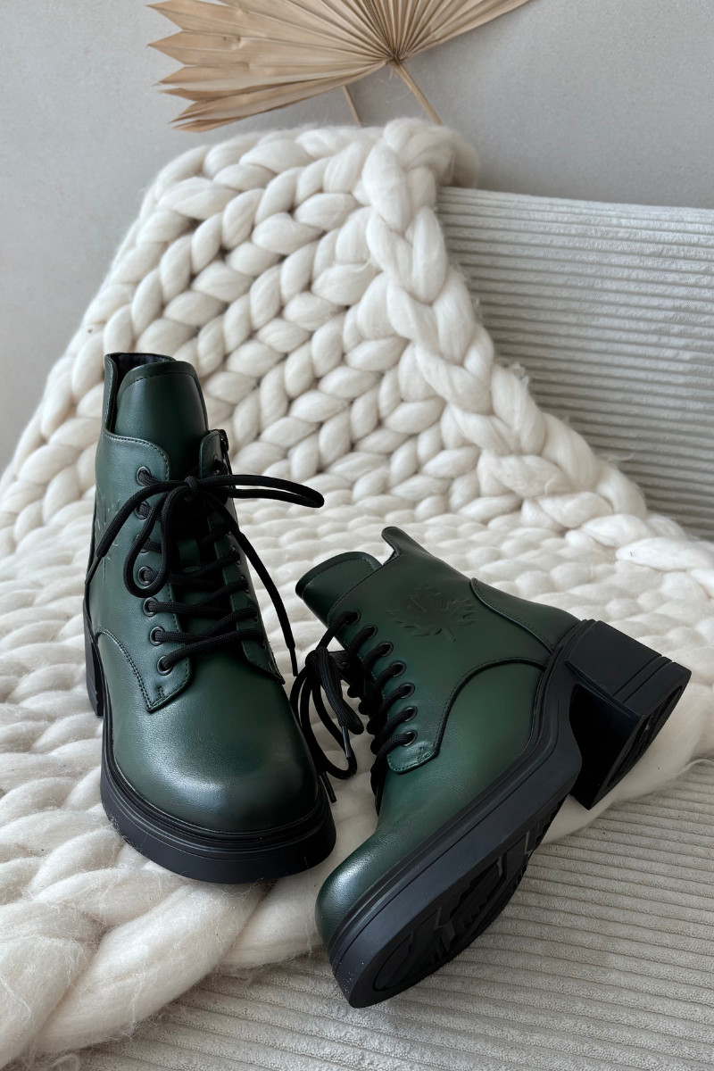 Moteriški natūralios odos aulinukai Klocke pašiltinti Vinceza 39950 chaki spalvos