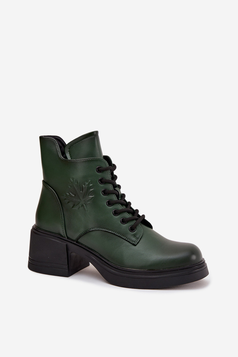 Moteriški natūralios odos aulinukai su kločkėmis, pašiltinti, Vinceza 39950 chaki spalvos