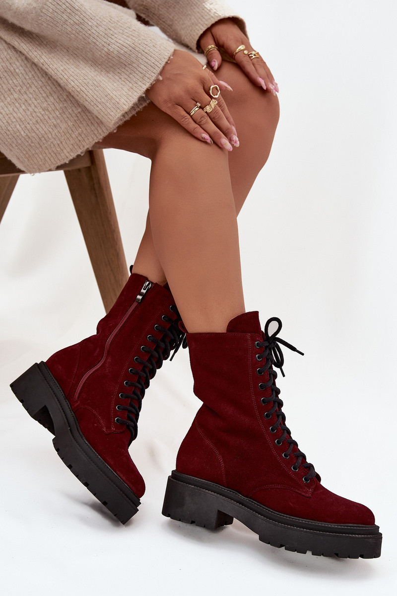 Darbiniai kulkšnies batai MoteriškassuĮjungtaturalnego iš zomšos pašiltinti Zazoo 4213 bordo spalvos