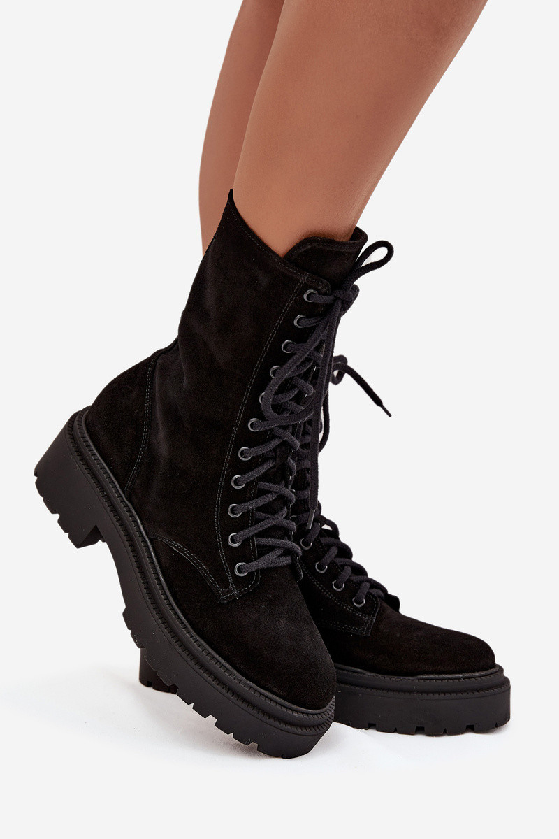 Darbiniai kulkšnies batai MoteriškassuĮjungtaturalnego iš zomšos pašiltinti Zazoo 4213 juodos spalvos