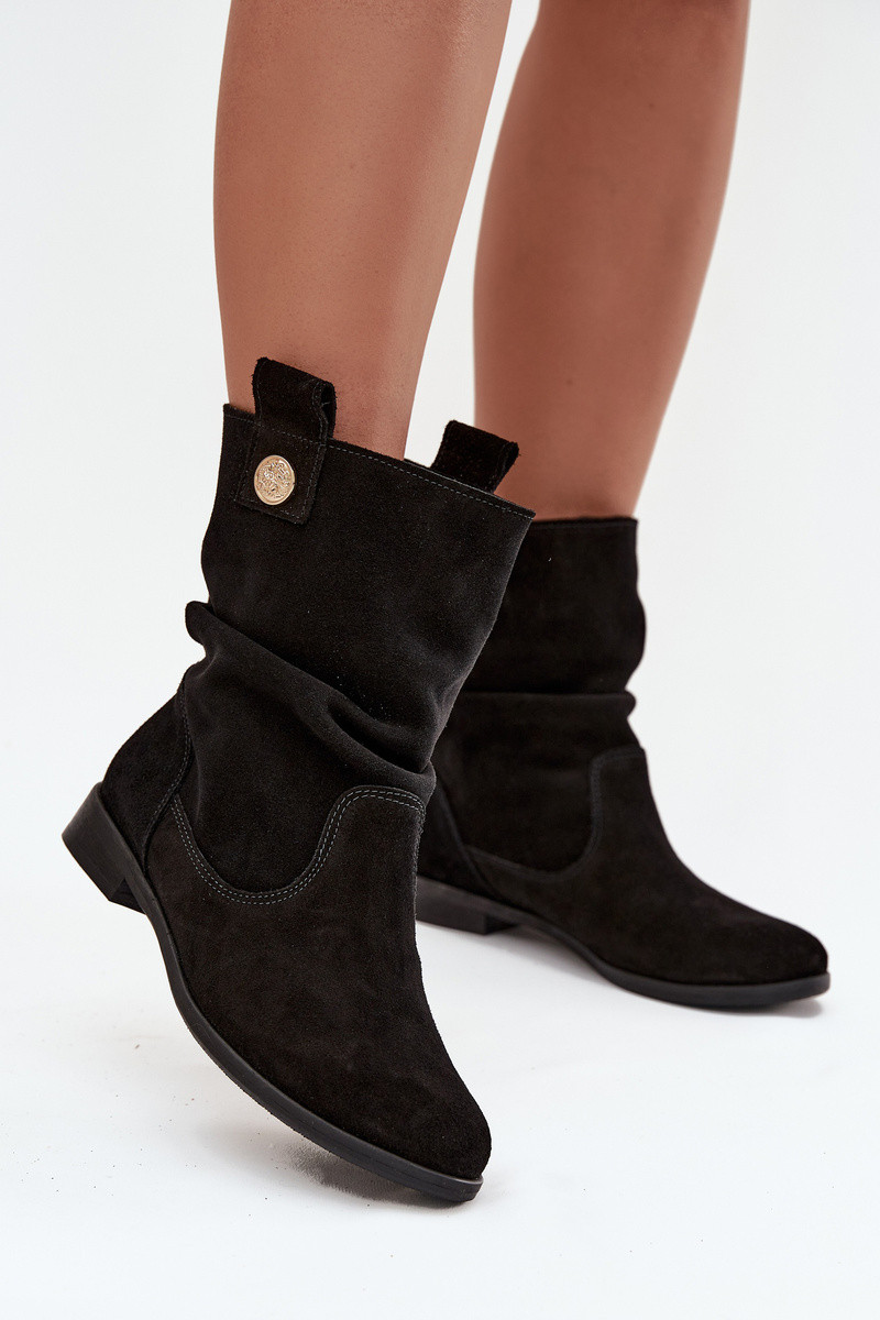 odiniai moteriški zomšiniai batai su raukiniais pašiltinti Zazoo 4210 juodos spalvos