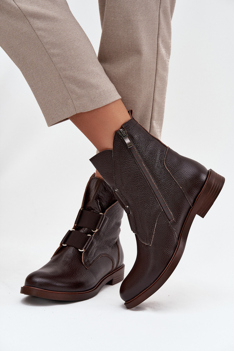 Moteriški natūralios odos aulinukai su plačiais kulniukais Zazoo 3842 šokoladinės spalvos