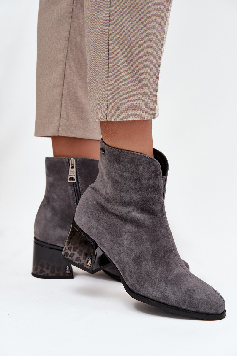 Moteriški natūralaus zomšo aulinukai su kulniukais pašiltinti Vinceza 66806 pilkos spalvos