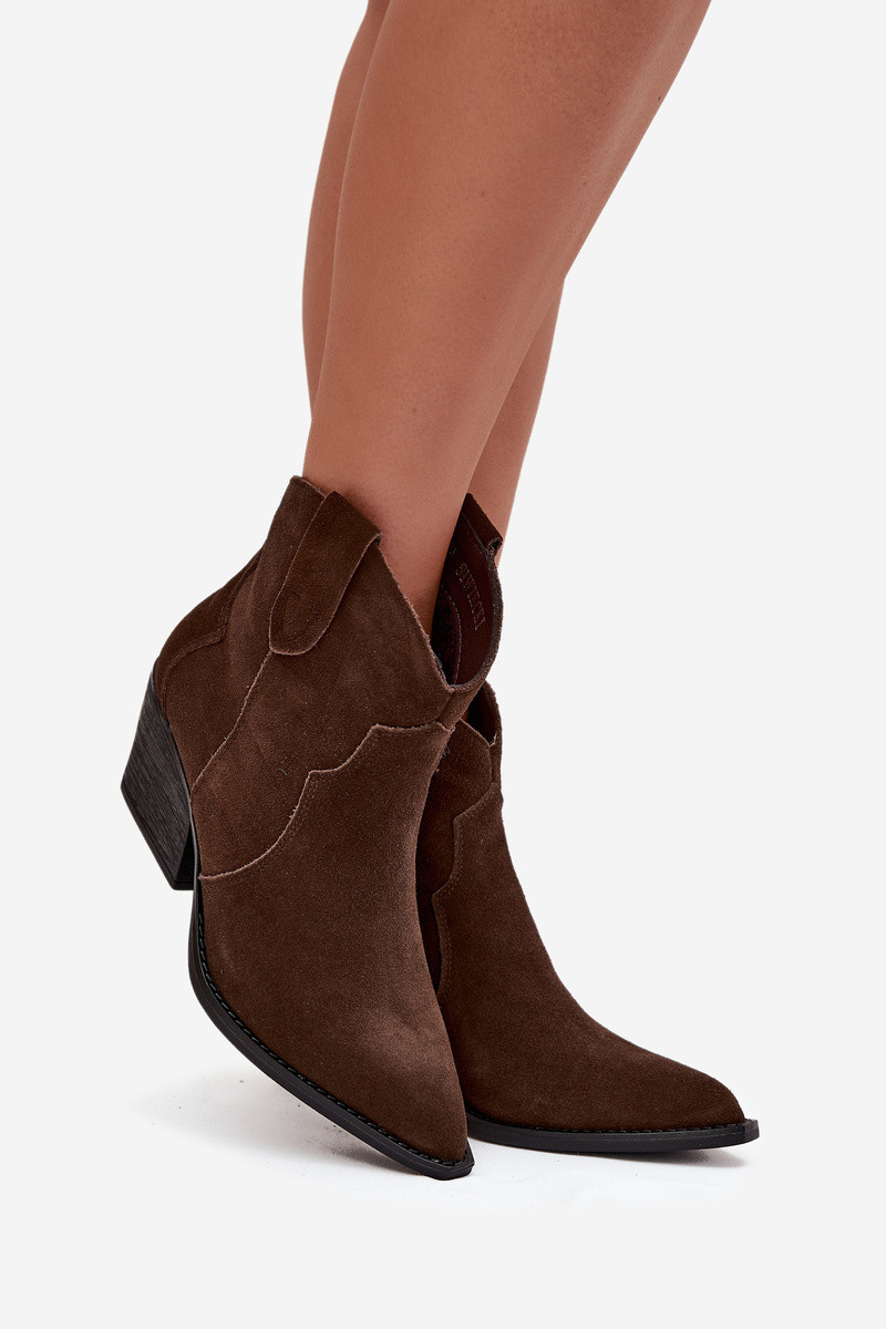 Įspiriami kaubojiško stiliaus moteriški aulinukai iš natūralios zomšos Beretta šokoladinės spalvos