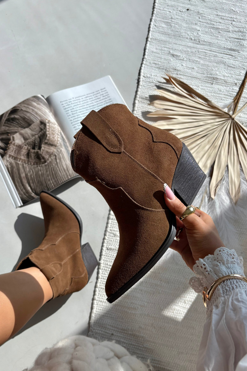 Įspiriami kaubojiško stiliaus moteriški aulinukai iš natūralios zomšos Beretta rudos spalvos