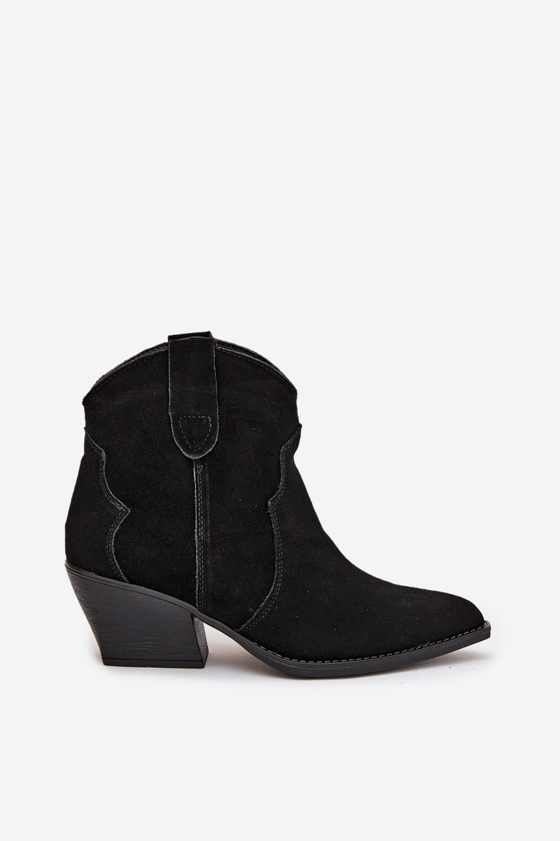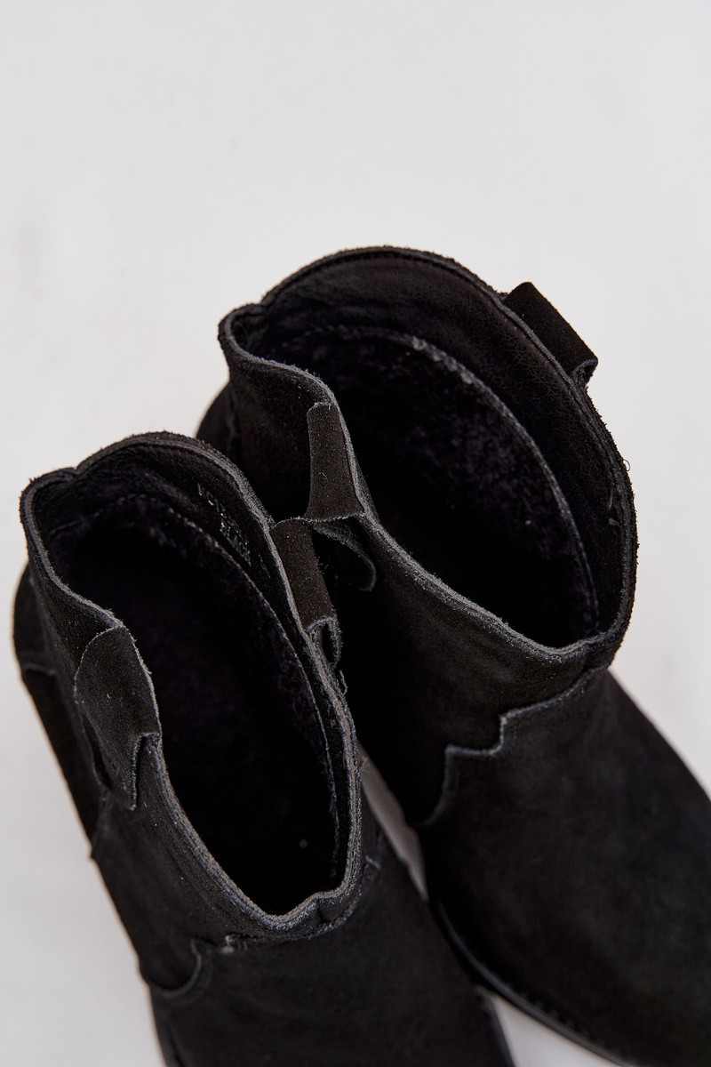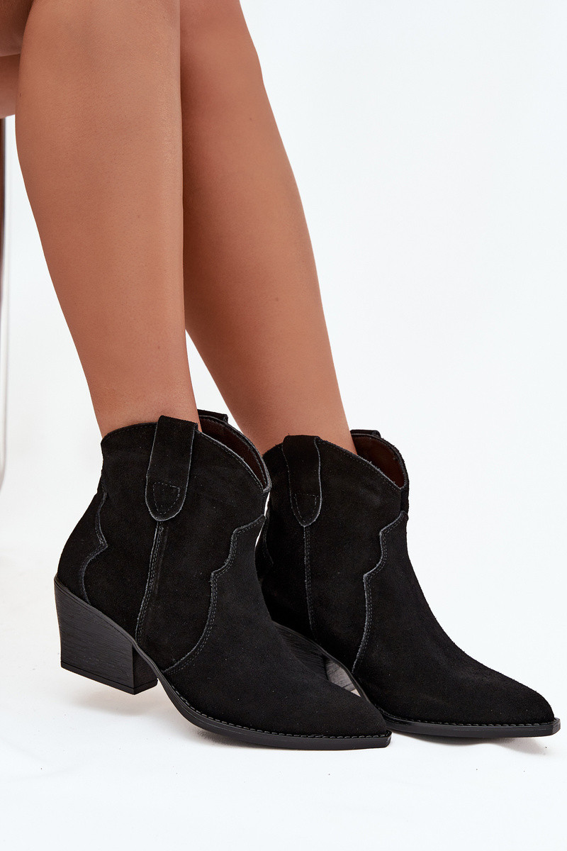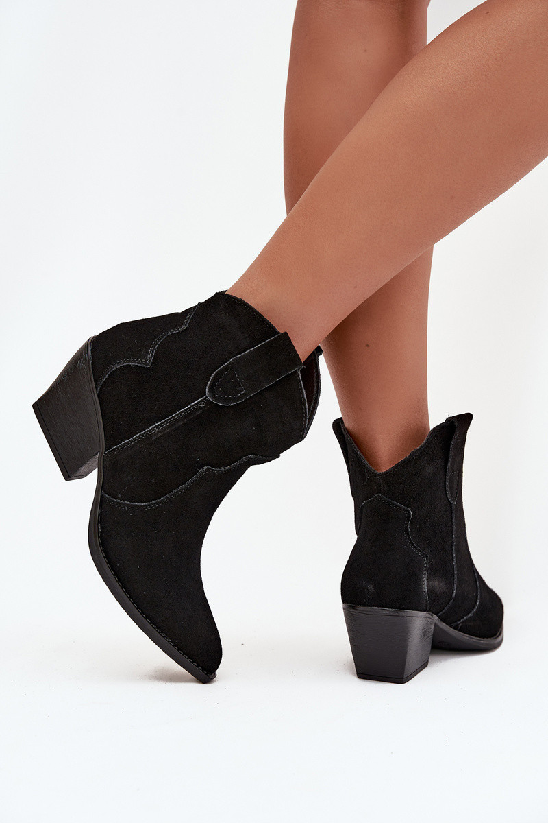 Įspiriami kaubojiško stiliaus moteriški aulinukai iš natūralios zomšos Beretta juodos spalvos