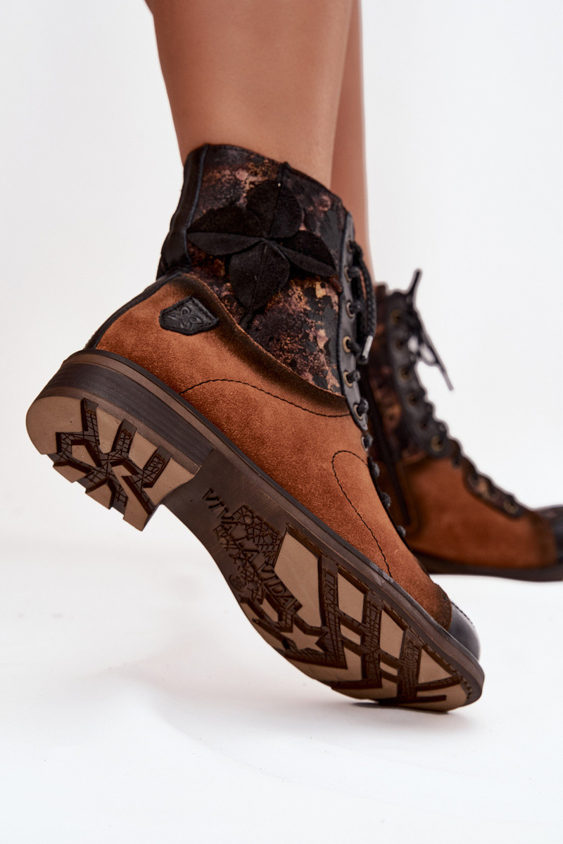 Moteriški odiniai aulinukai iš natūralios odos su plačiais kulniukais Tai turiciejka 07004-29 rudos spalvos
