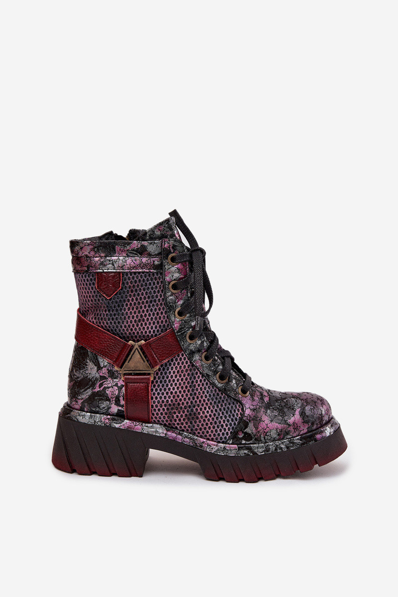 Odiniai darbiniai moteriški kulkšnies batai Tai turiciejka 07072-23 bordo spalvos
