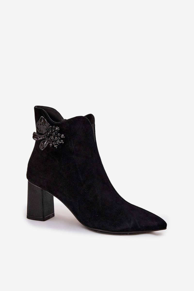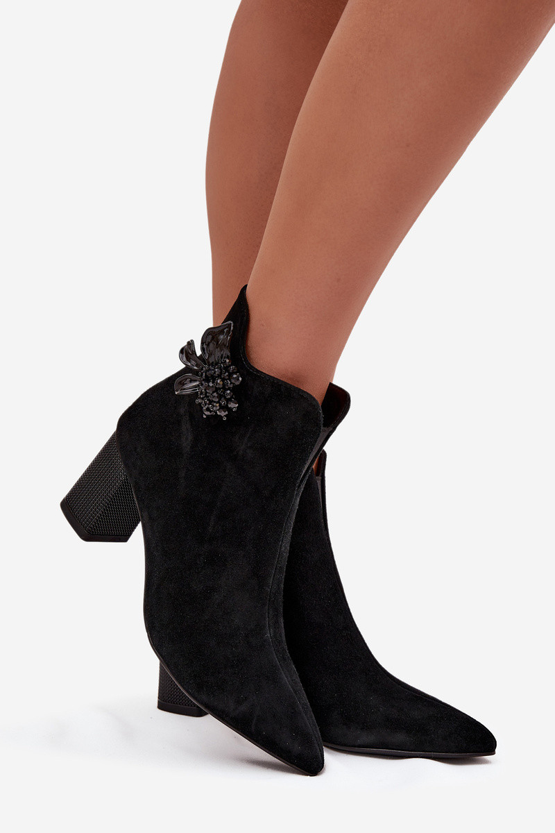 iš zomšos Moteriški aulinukai su ornamentais D&A CR52-686 juodos spalvos