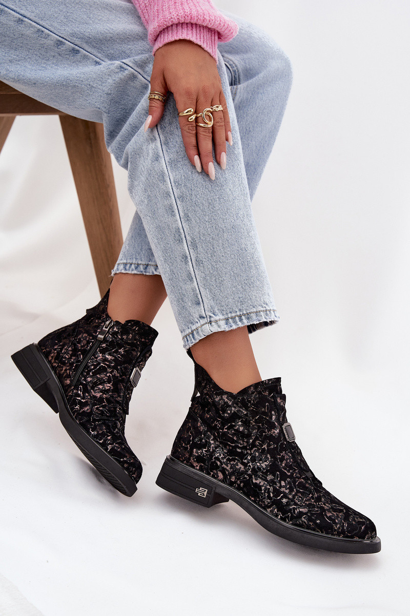 Aulinukai iš natūralaus zomšo su žemu kulnu D&A CR52-713 juodos ir rudos spalvos
