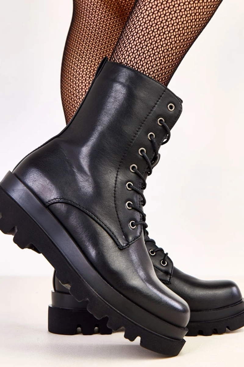 Juodi klasikiniai moteriški žygio batai iš dirbtinės odos Nargila