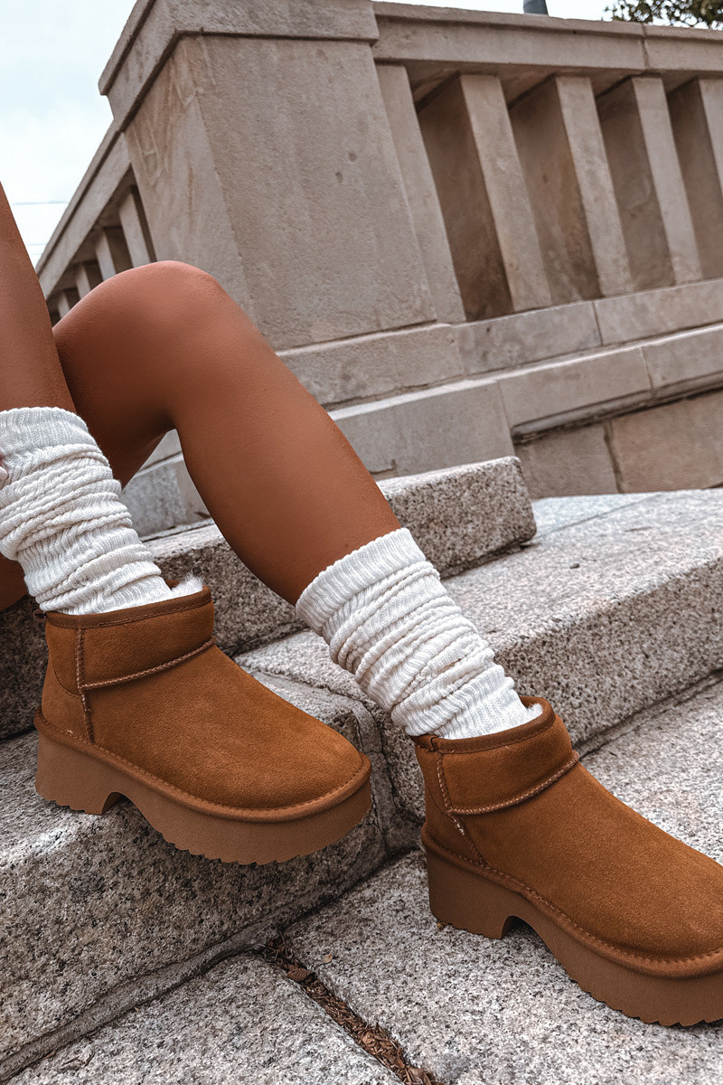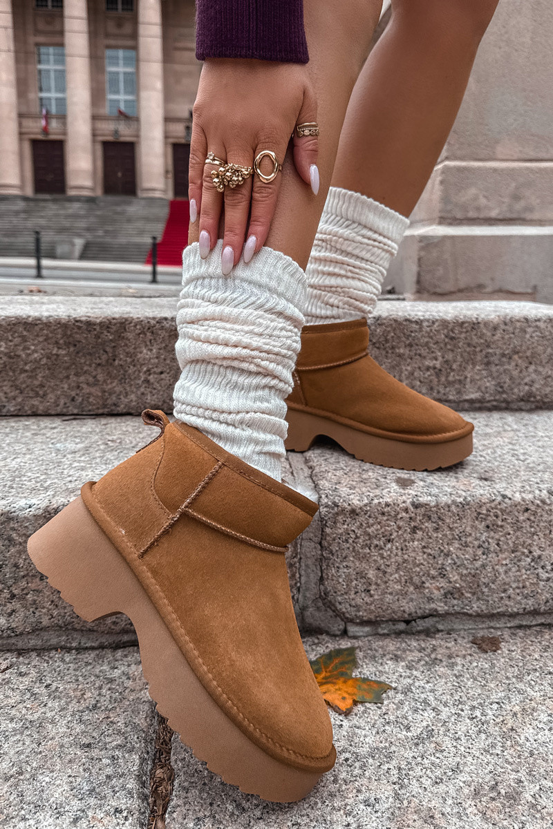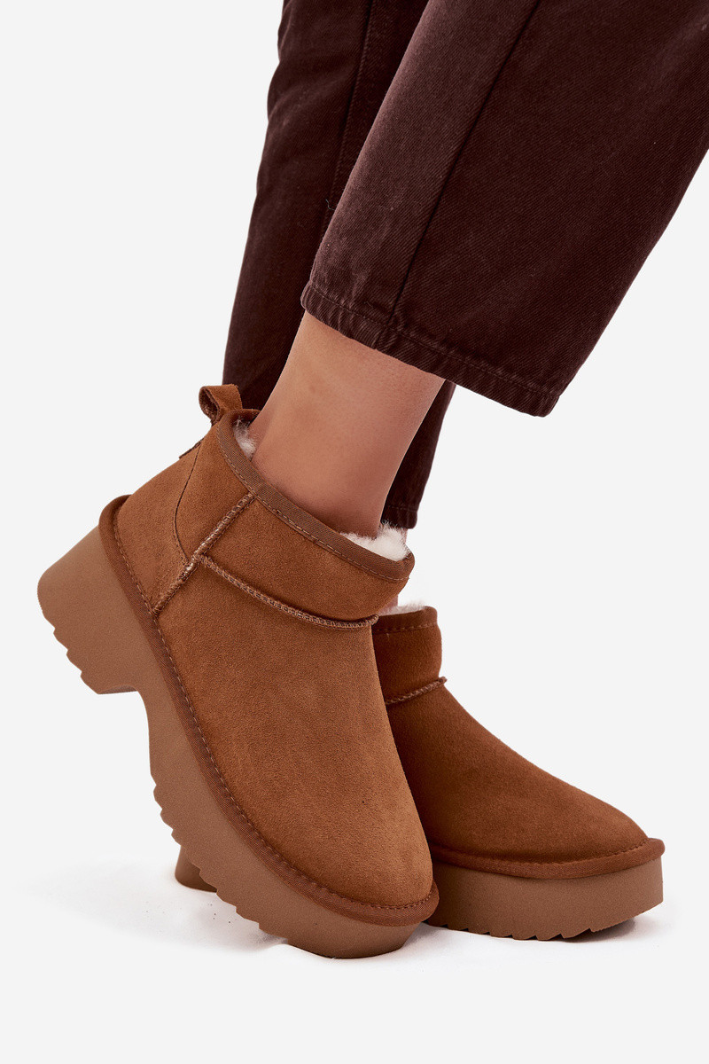 Moteriški sniego batai iš natūralaus zomšo pašiltinti su kailiuku viduje rudos spalvos Milora