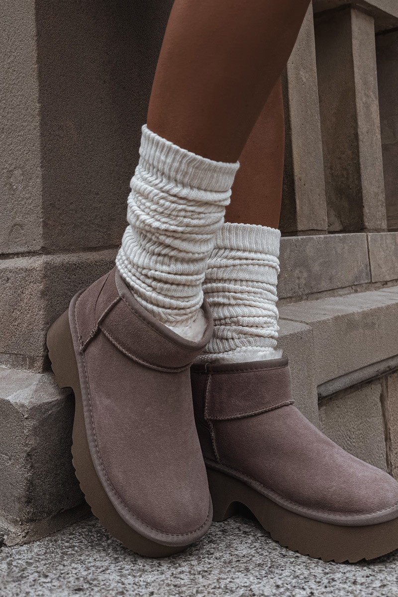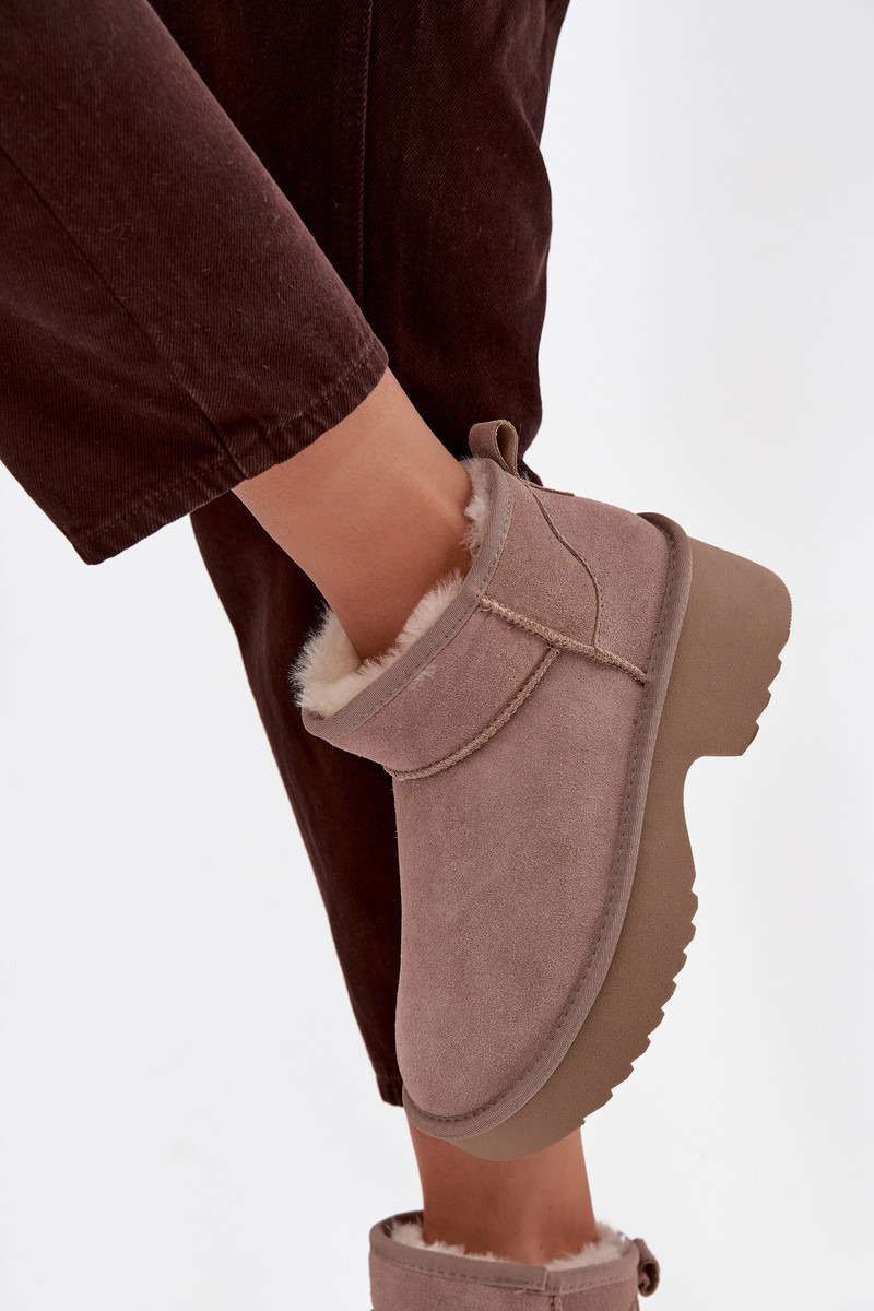 Moteriški sniego batai iš natūralaus zomšo pašiltinti su kailiuku viduje chaki spalvos Milora