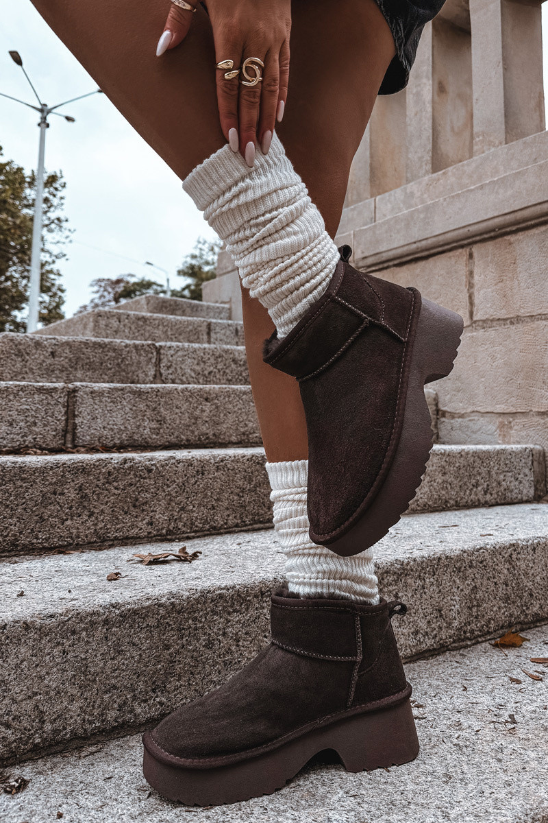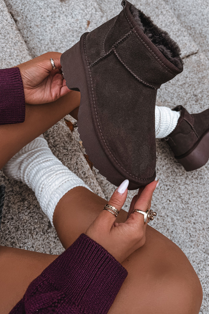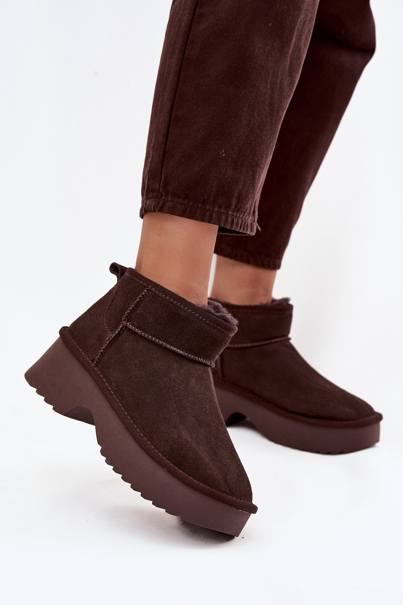 Moteriški sniego batai iš natūralaus zomšo pašiltinti su kailiuku viduje šokoladinės spalvos Milora