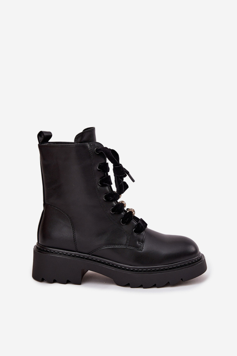 Pašiltinti moteriški aulinukai su puošniais suvarstymais, juodos spalvos Elindra
