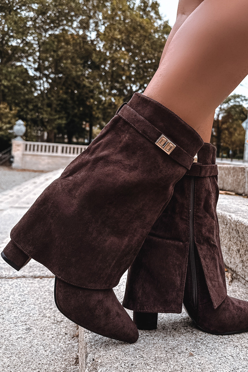 Pašiltinti moteriški aulinukai su dekoruotais kulnais šokoladinės spalvos Luvielle