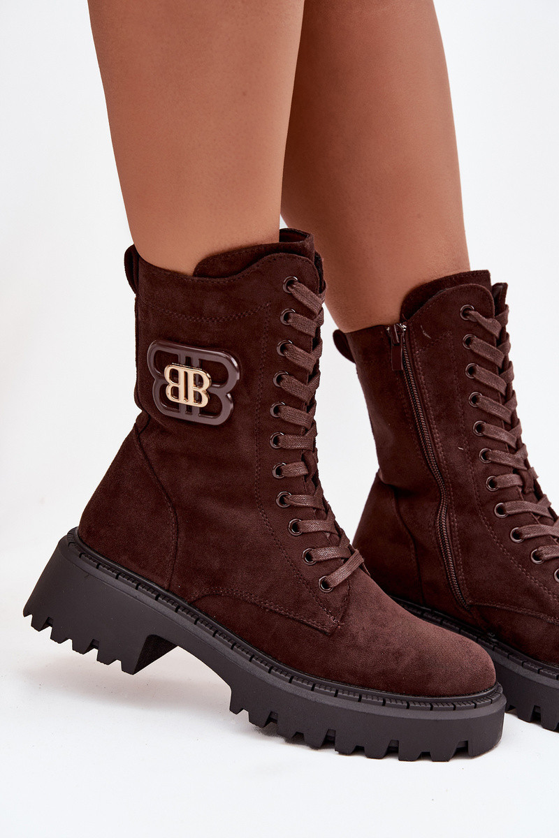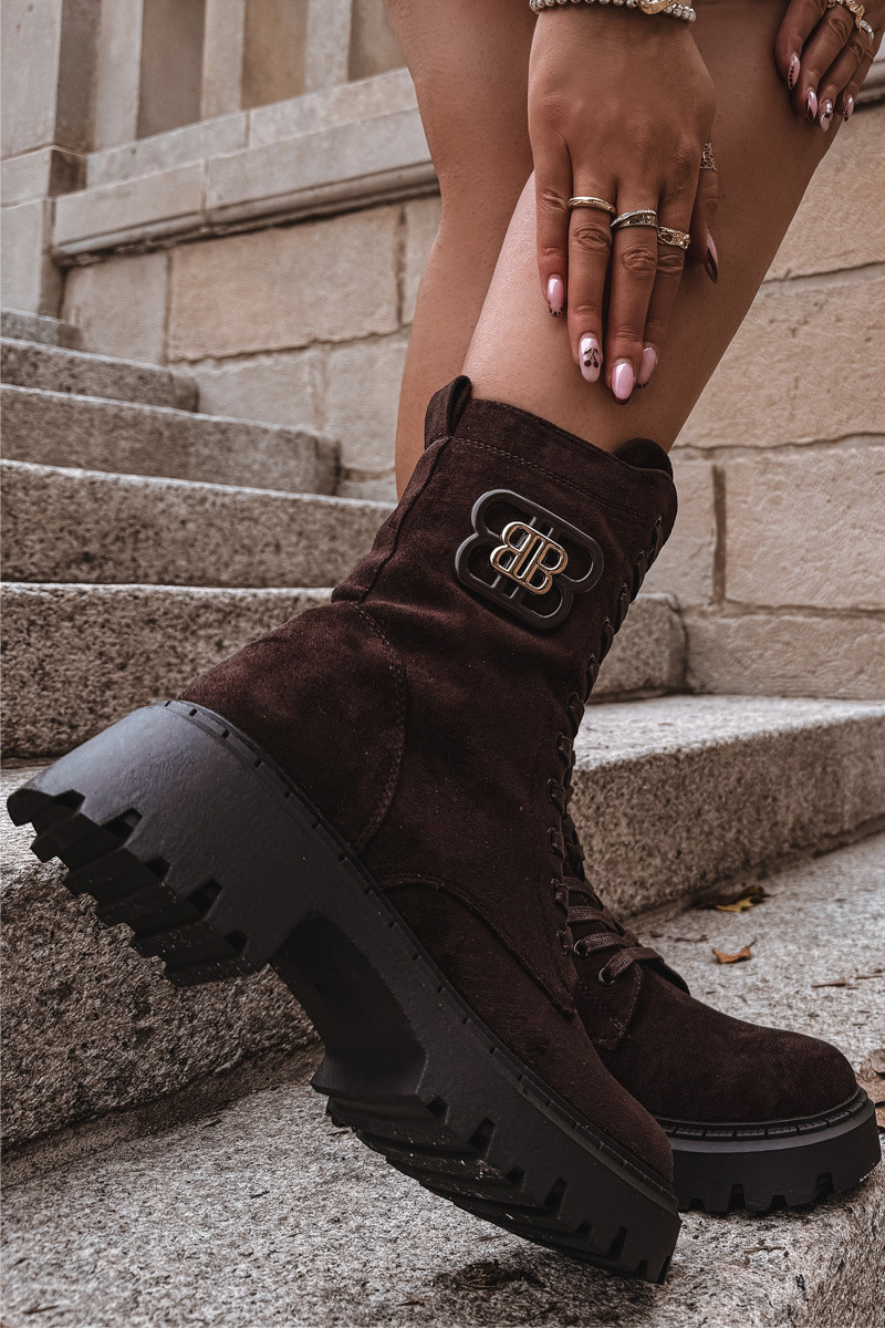 Aulinukai moteriški su puošniais elementais pašiltinti šokoladinės spalvos Kalindra