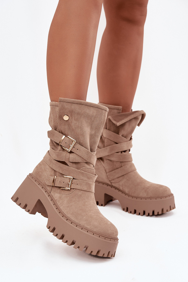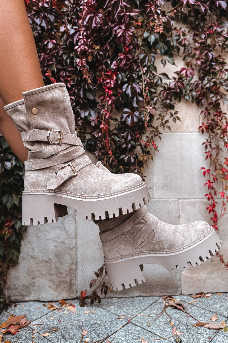 Moteriški aulinukai ant masyvių kulnų su sagtimis ir juostelėmis smėlio spalvos Nerelisa