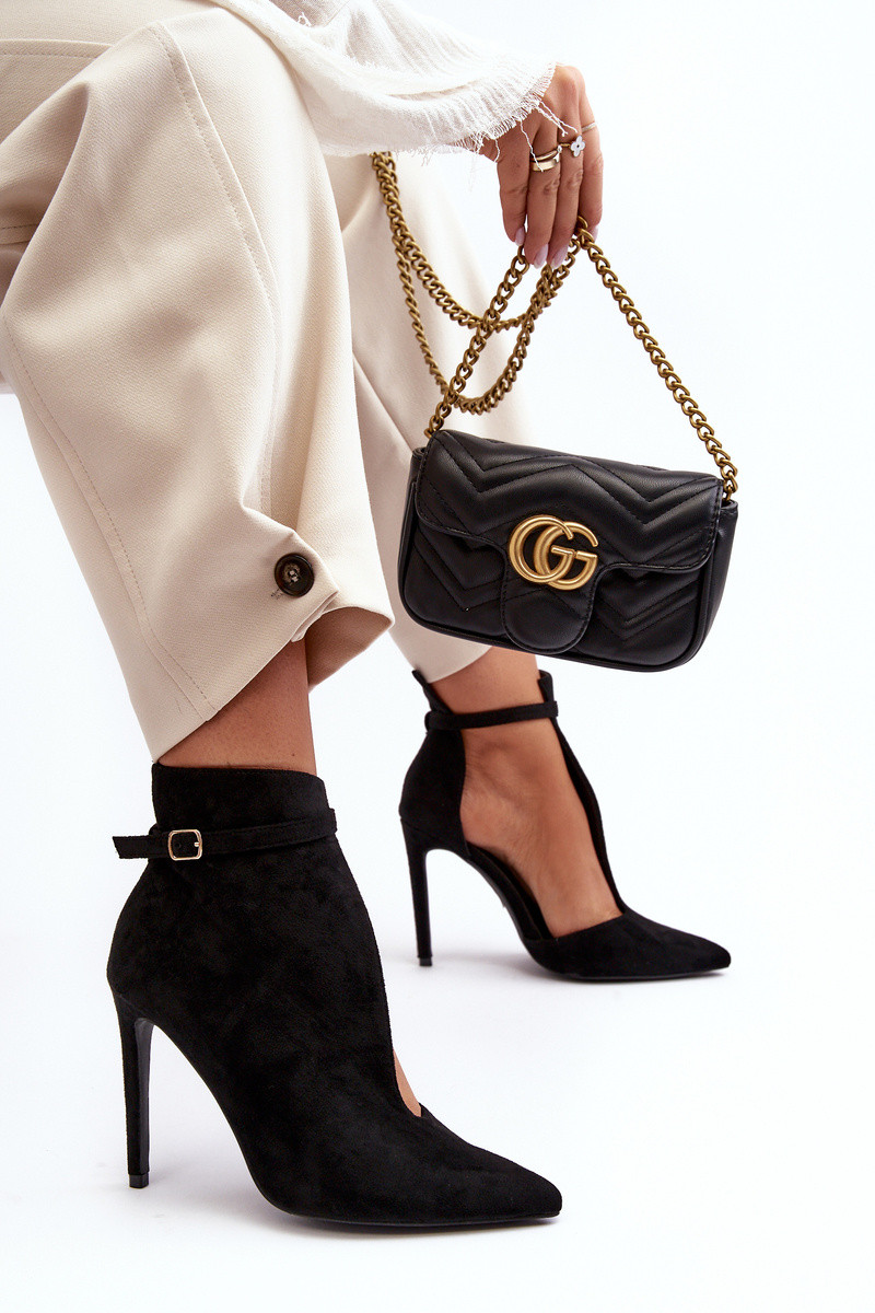 Juodi zomšiniai moteriški batai su plonais kulniukais Amalundi