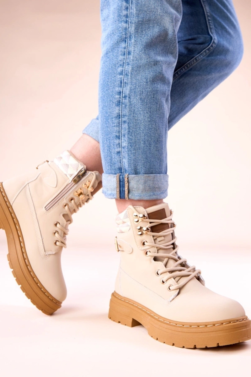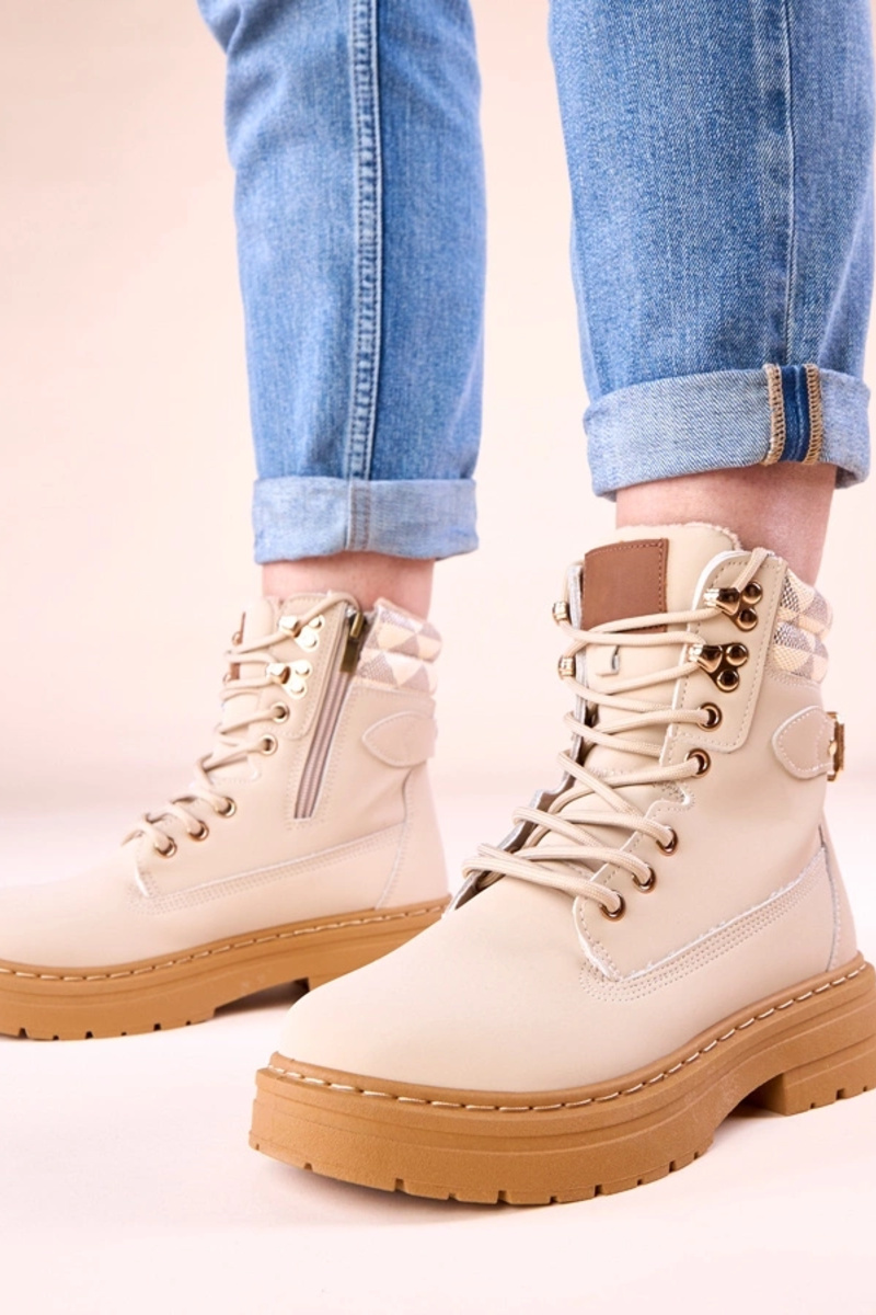 Smėlinės šiltos traperės iš matinės dirbtinės odos Selio