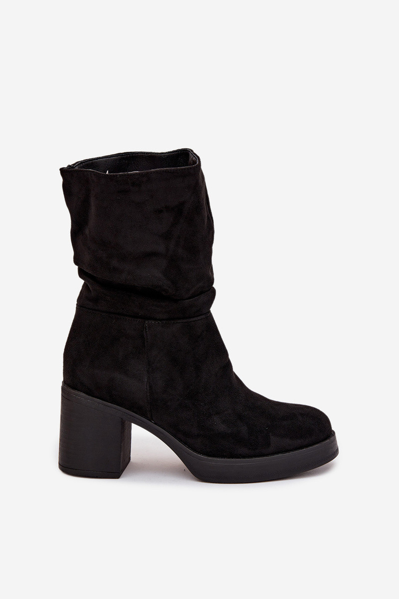 Moteriški aulinukai su raukiniais ir kulniukais, pašiltinti, juodos spalvos „Amoria"
