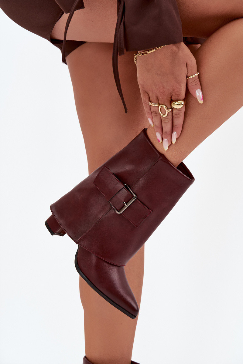 Pašiltinti aulinukai su kulniukais su atlenkta aule ir sagtimis bordo spalvos Ylenara