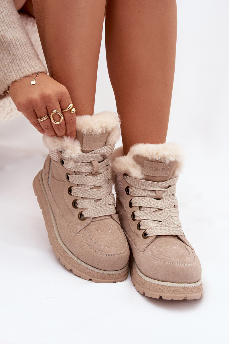 iš zomšos sniego batai batai Moteriškas su platforma su kailiuku Big Star SS274371 smėlio spalvos