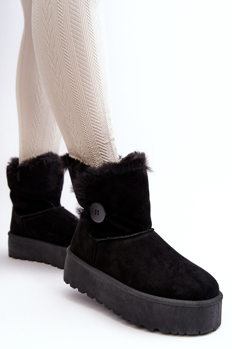Moteriški sniego batai su platforma ir kailiuku juodos spalvos INikasem