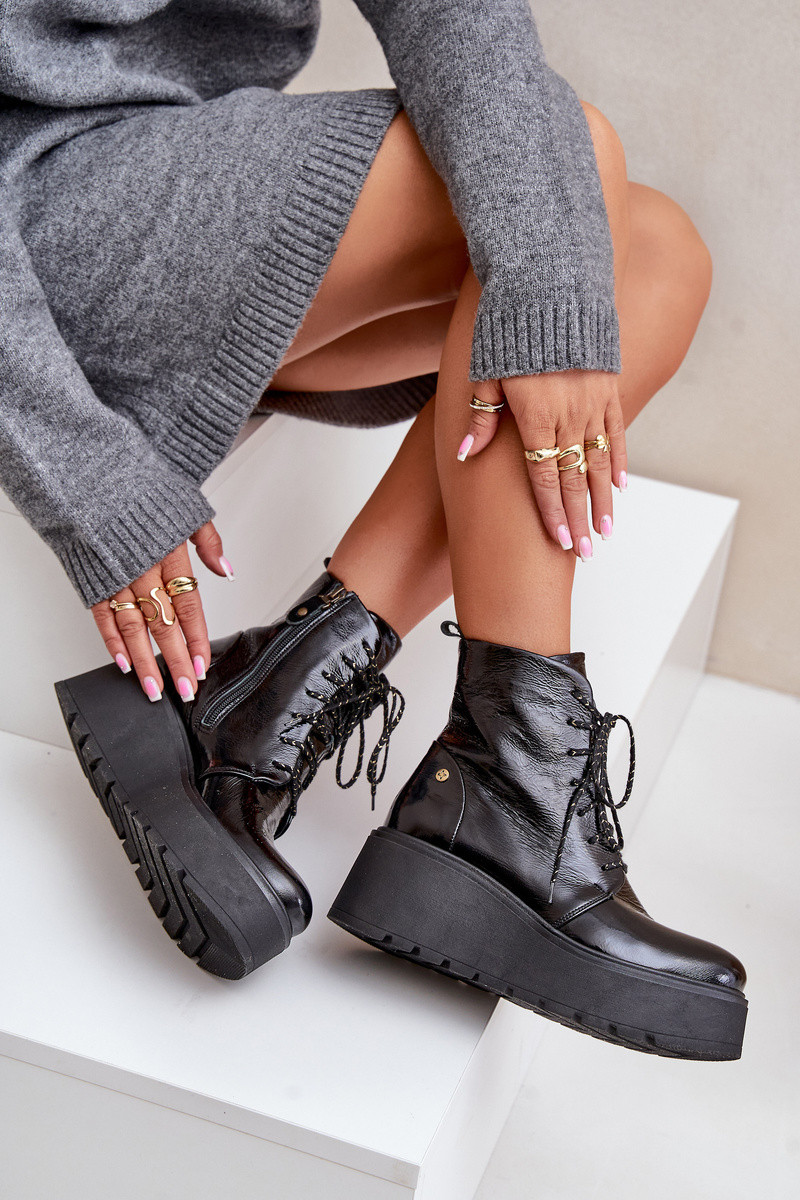 Odiniai su lako efektu aulinukai su platforma ant pakulnio Tai turiciejka 06762-01 juodos spalvos