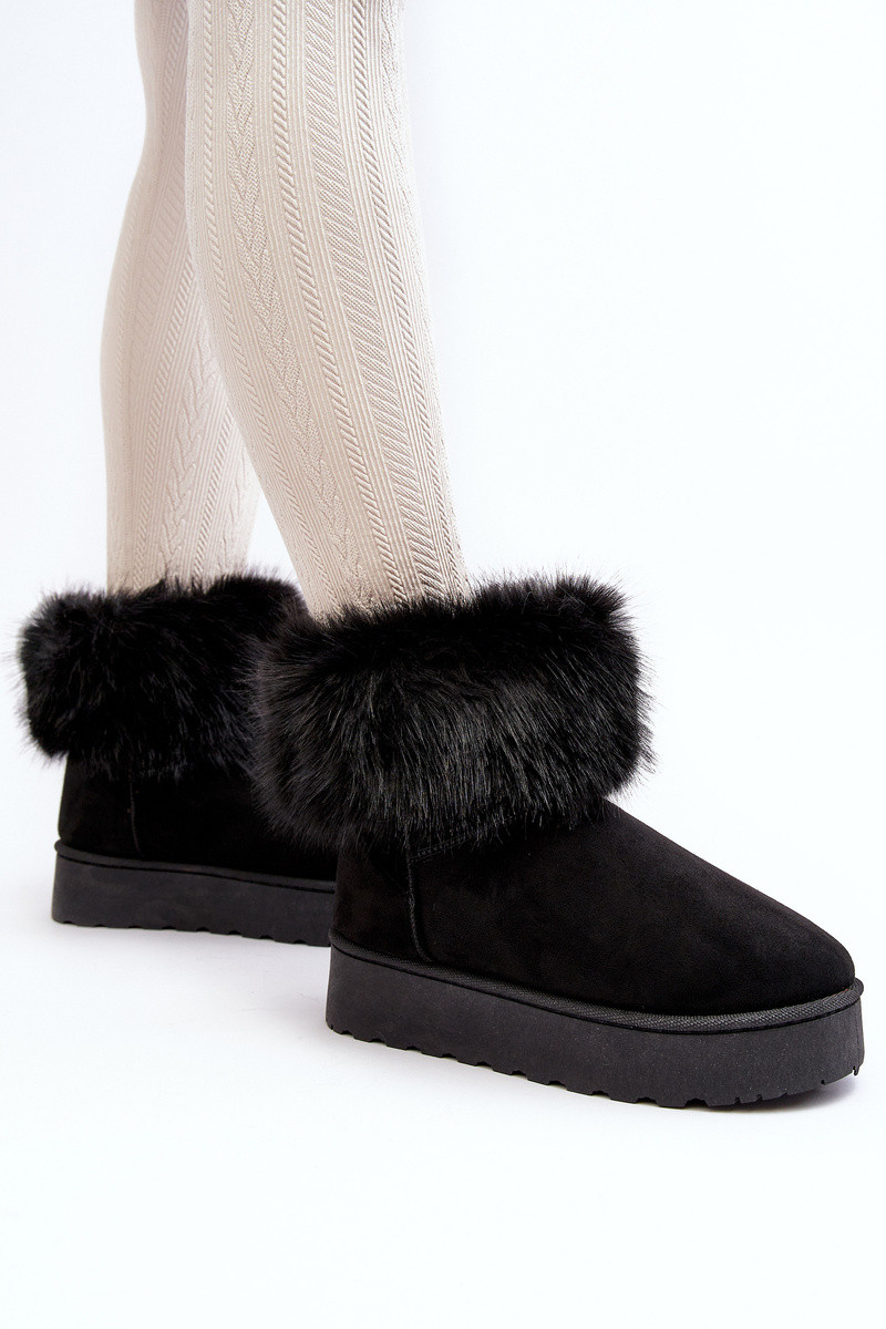 Moteriškas sniego batai su platforma su kailiuku juodos spalvos Tai turincy
