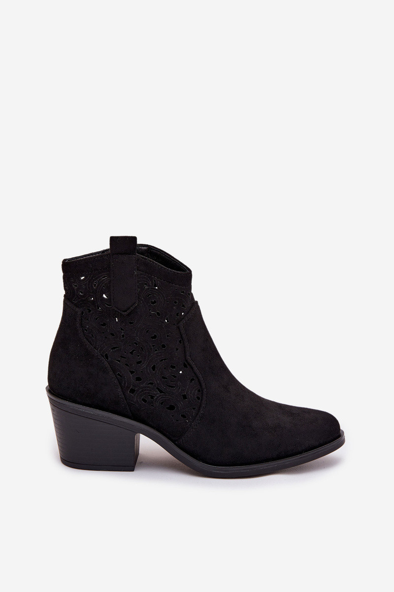 Ažūriniai moteriški kaubojiško stiliaus aulinukai su kulniukais S.Barski HY61-8012 juodos spalvos