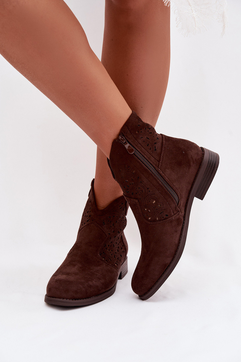 Ažūriniai moteriški aulinukai su plačiais kulniukais S.Barski HY61-8026 šokoladinės spalvos