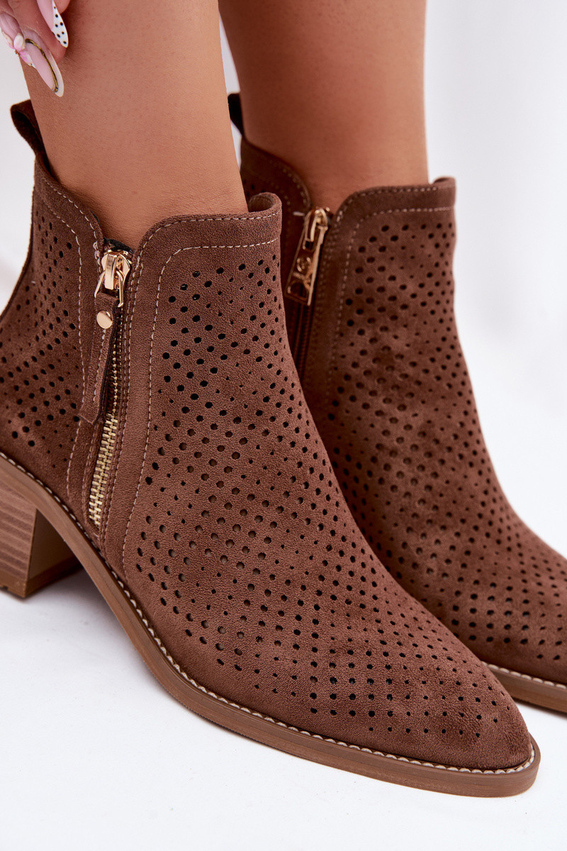 Ažūriniai moteriški aulinukai su kulniukais Vinceza 58621 rudos spalvos