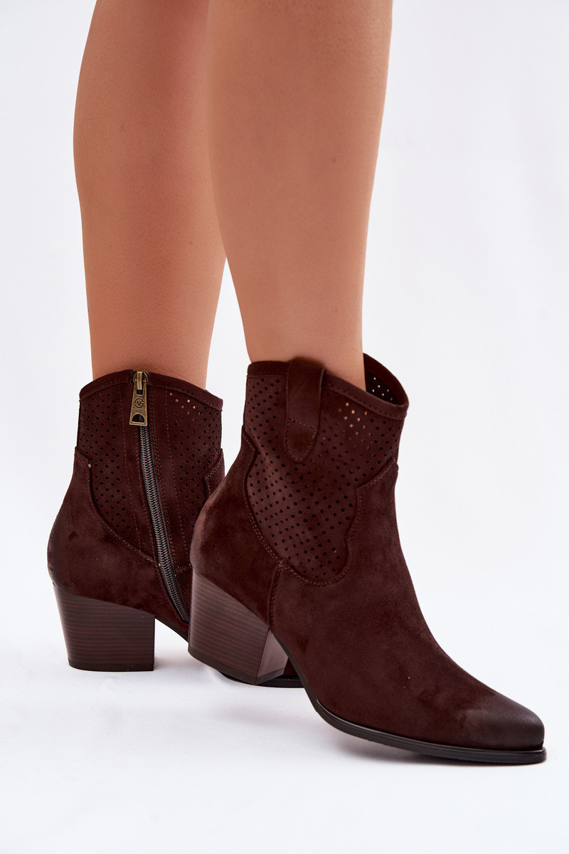 Ažūriniai aulinukai kaubojiško stiliaus Moteriškas su kulniukais Vinceza 58150 CzekoladoĮe
